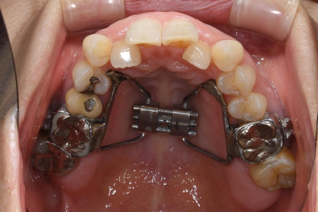 この患者様は、他院で矯正治療を開始されましたが、痛みが強すぎて他の方法がないかということで当院を受診されました。