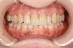 正面の真ん中2本の歯並び、重なり具合を気にされており、2本のピンポイントでセラミックでの治療を行いました。以下が術後写真です。