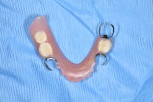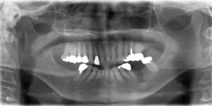 上記のように、入れ歯を長年使用されておりましたが、右下の歯が痛くて噛めないとのお悩みを抱えていらっしゃいました。