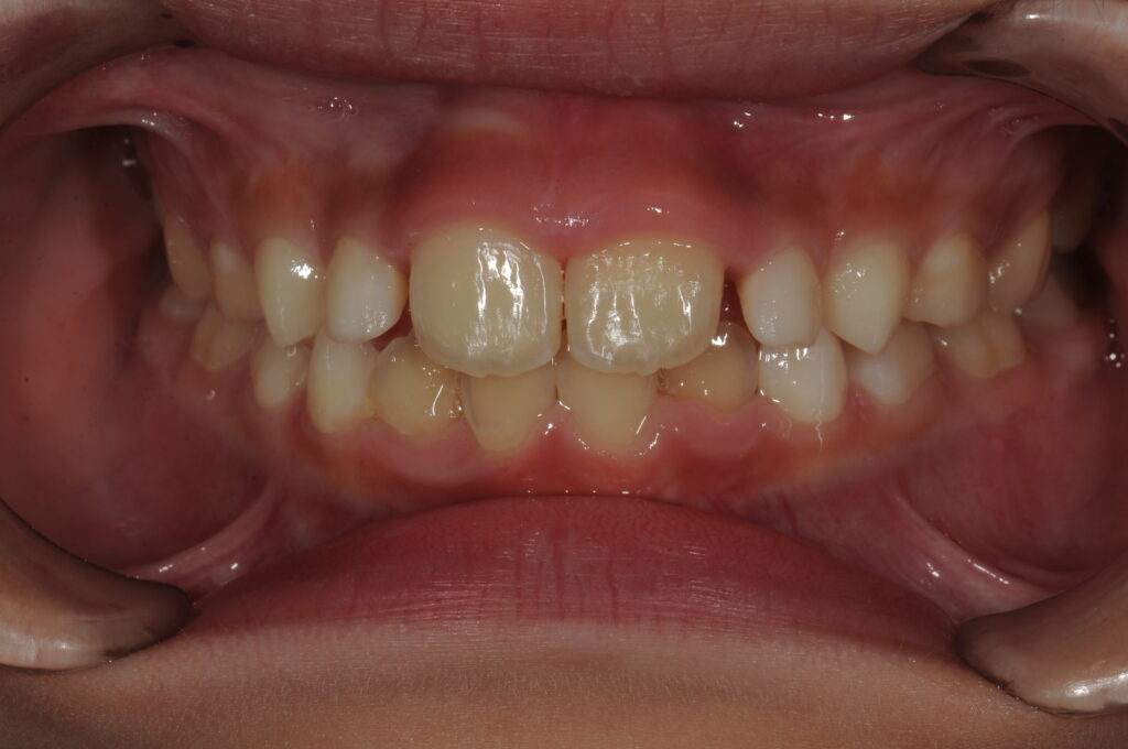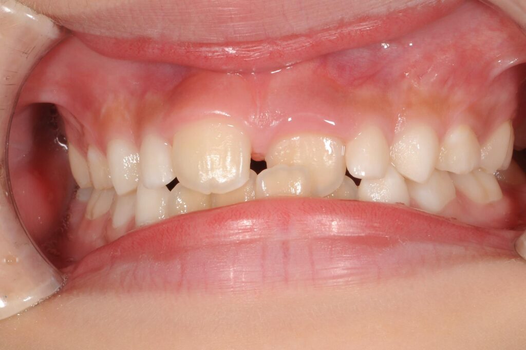 この状態を放置すると、上の歯の骨の成長を阻害し、大人になった時にそこだけへこんでしまいます。