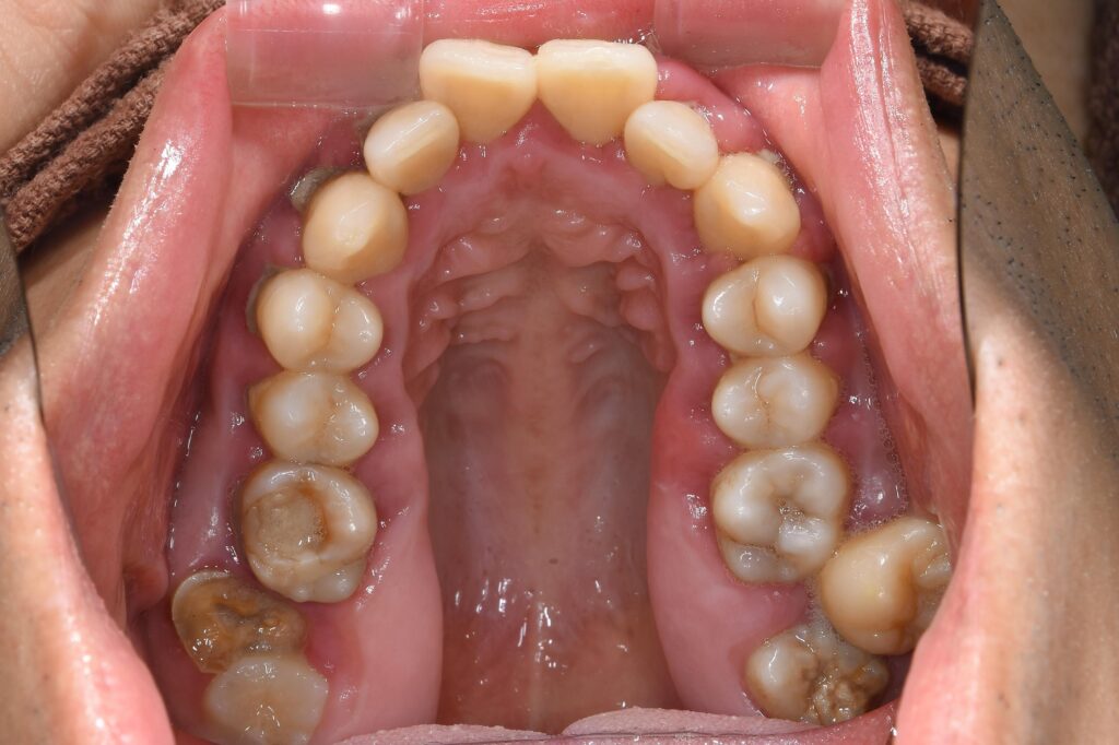 初診時、歯周病・虫歯も進行しており、まずは初期治療として歯周病治療・虫歯治療を行いました。