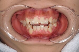 この患者様は、矯正診断時、骨格的な不調和が大きく手術を併用した矯正治療が必要だと診断されておりましたが、なんとか手術なしでできないかとご相談を頂き、可能なところまでやりましょうと矯正治療がスタートしました。